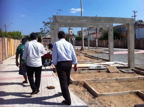 Em seguida, Lucio Gomes acompanhou as obras de readequação dos passeios e de reestruturação e pavimentação do centro histórico, que recebem recursos da ordem de R$ 14.582.631.